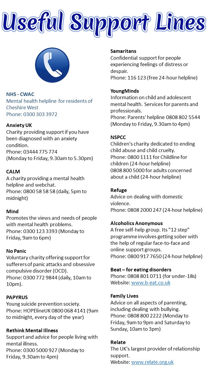 Mental health and wellbeingAt Christleton Primary School, we are committed to supporting the emotional health and wellbeing of our pupils and staff. We know that everyone experiences life challenges that can make us vulnerable and at times, anyone may need additional emotional support. We take the view that positive mental health is everybody’s business and that we all have a role to play. For our pupils we aim to develop the 'whole child'. This means working to develop them educationally, emotionally, spiritually, morally and physically. As well as caring for their education we also care for their mental health and wellbeing and feel that it is essential to provide children with information to enable them to make life long, well informed decisions about their diet and health.
